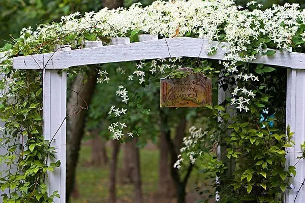 直立的樹(shù)木、易彎曲的樹(shù)枝加上繩子,在長(zhǎng)凳、草皮椅或種有白花春黃菊的泥坎上方搭成拱形,便可以成為一道簡(jiǎn)易的藤架景觀。