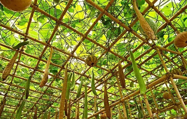 對(duì)于莖干草質(zhì)的攀援植物,如葫蘆、蔦蘿、牽牛等,往往要借助于牽繩而上,在花架柱梁板之間也要有支撐、固定,方可爬滿全棚。