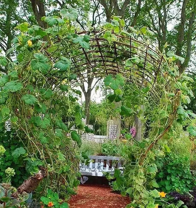 瓜果類的則有葡萄、獼猴桃、絲瓜、葫蘆、南瓜等。通常瓜菜類的生長(zhǎng)速度快,等不及的話就種瓜吧!讓藤架從春到冬都色彩繽紛,賞心悅目。