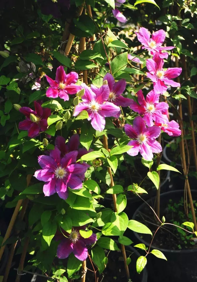 適合攀爬在藤架上的植物十分豐富,如紫藤、鐵線蓮屬、凌霄、爬山虎、木香、炮仗花、薔薇、藤本月季等。