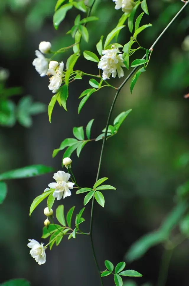 木香是攀援灌木,種在墻邊或是花籬上。初夏時木香開花,一簇簇,一團團,白的如雪,黃的似霞。