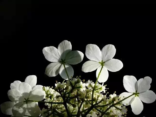瓊花是半常綠的灌木,每年四五月間開花,花大如盤,色白如玉,四周八朵五瓣小花拱簇著中間的珍珠似的的小花。到了草木凋零之際,綠葉紅果,分外迷人。
