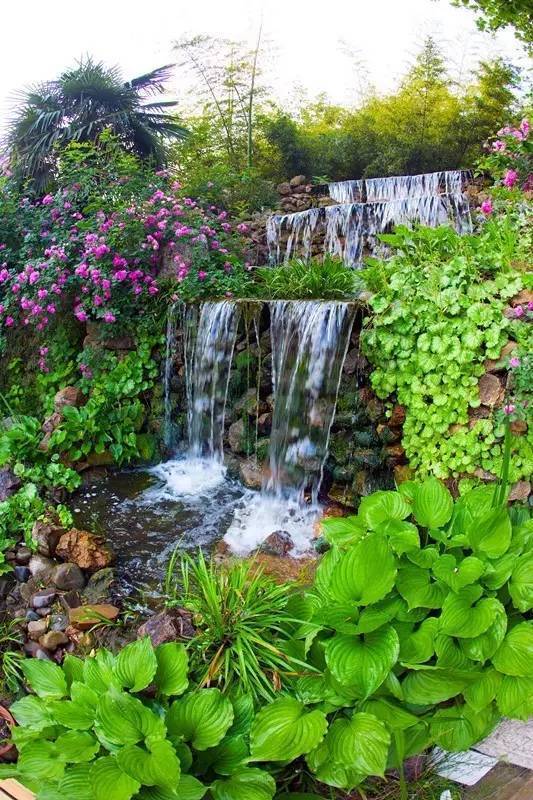 山泉從山上自然流進園子,